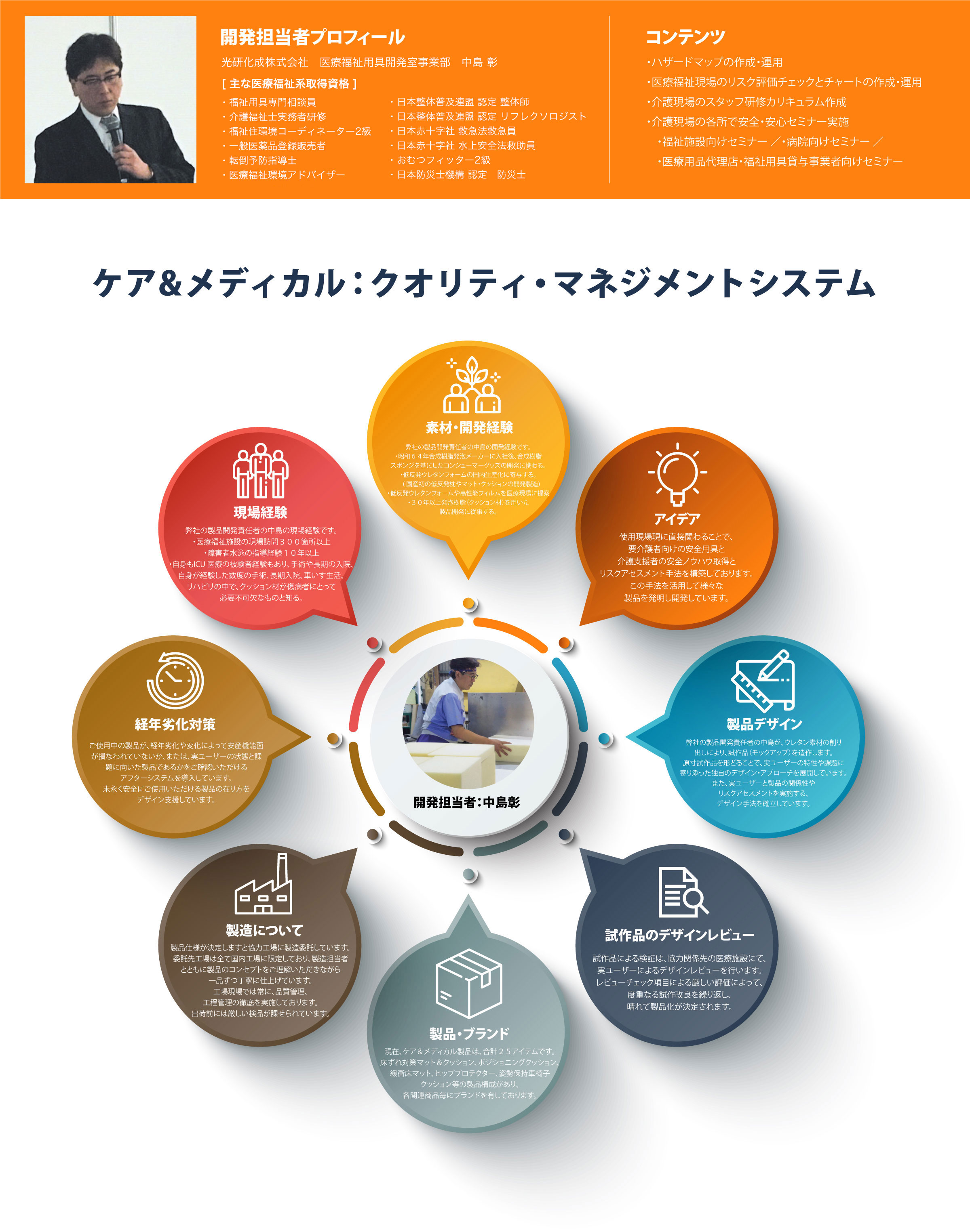 光研化成株式会社は〈転倒転落・誤嚥・床ずれ〉を未然に防ぎ、アクシデント発生時には最小限のダメージに抑える事ができる製品開発をおこない、そのノウハウの蓄積をもって社会啓発活動の一助となる取り組みを行ってまいります。